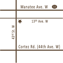 From I-75 take exit 220 West on SR 64 (turns into Manatee Ave W).